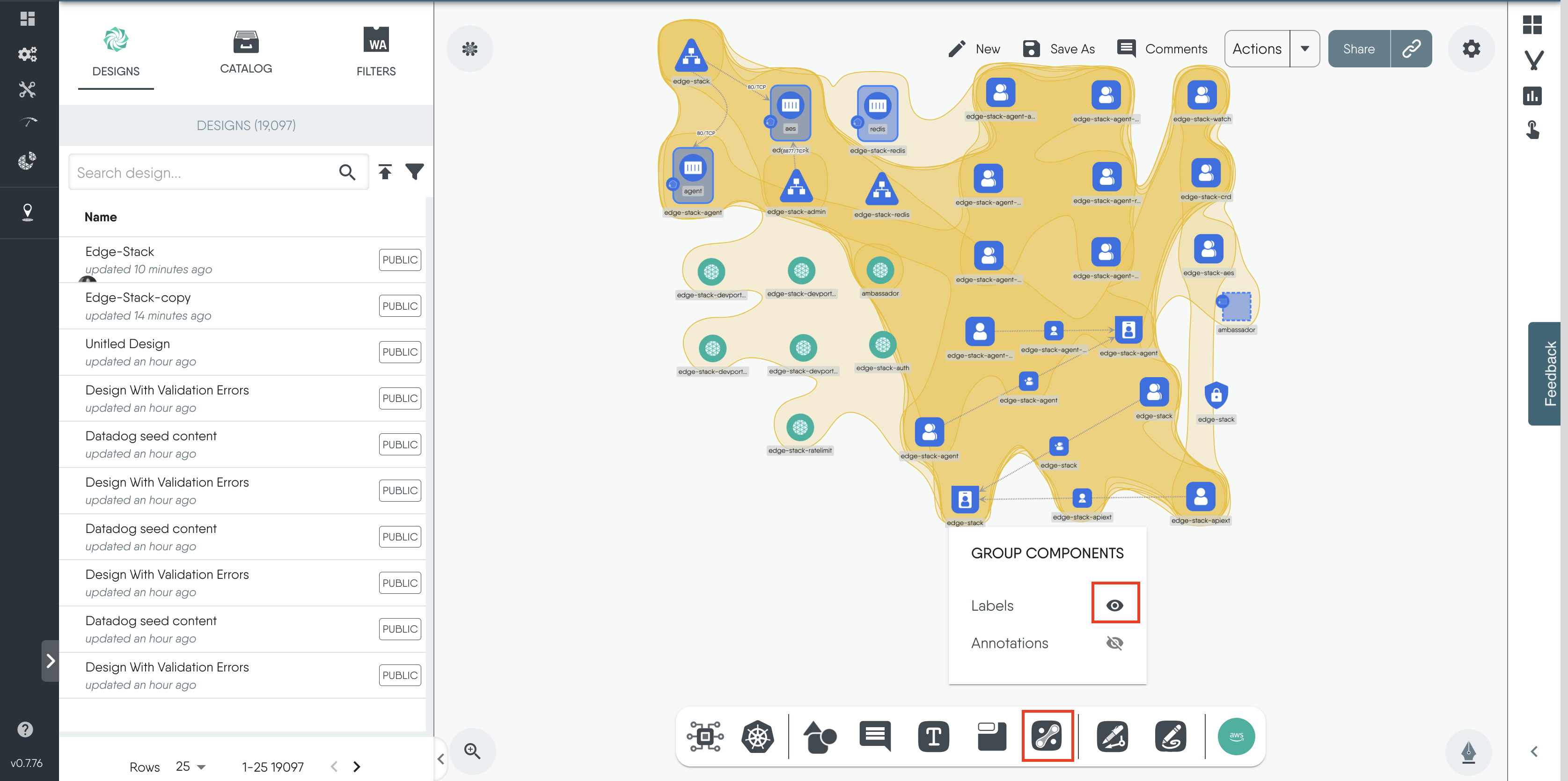 - You can use the Group Components icon on the dock below to group resources based on shared labels or annotations.