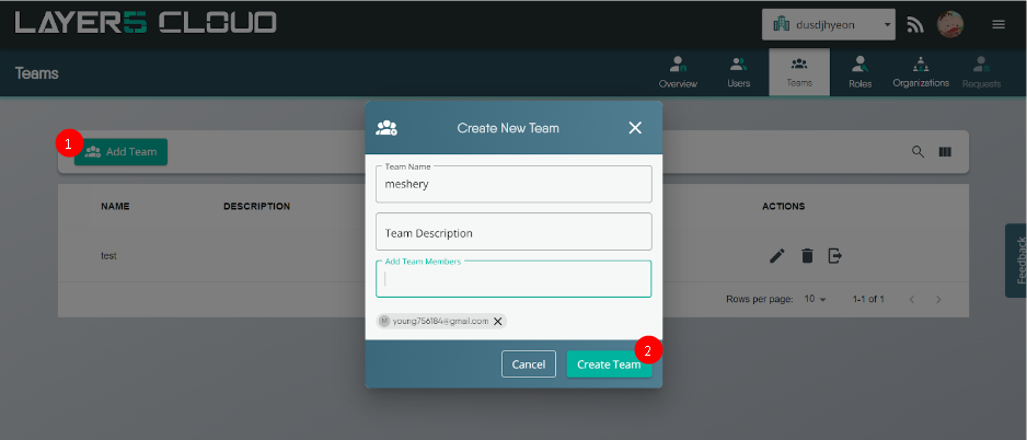 - Teams are visible when you visit the Identity page in Layer5 Cloud.