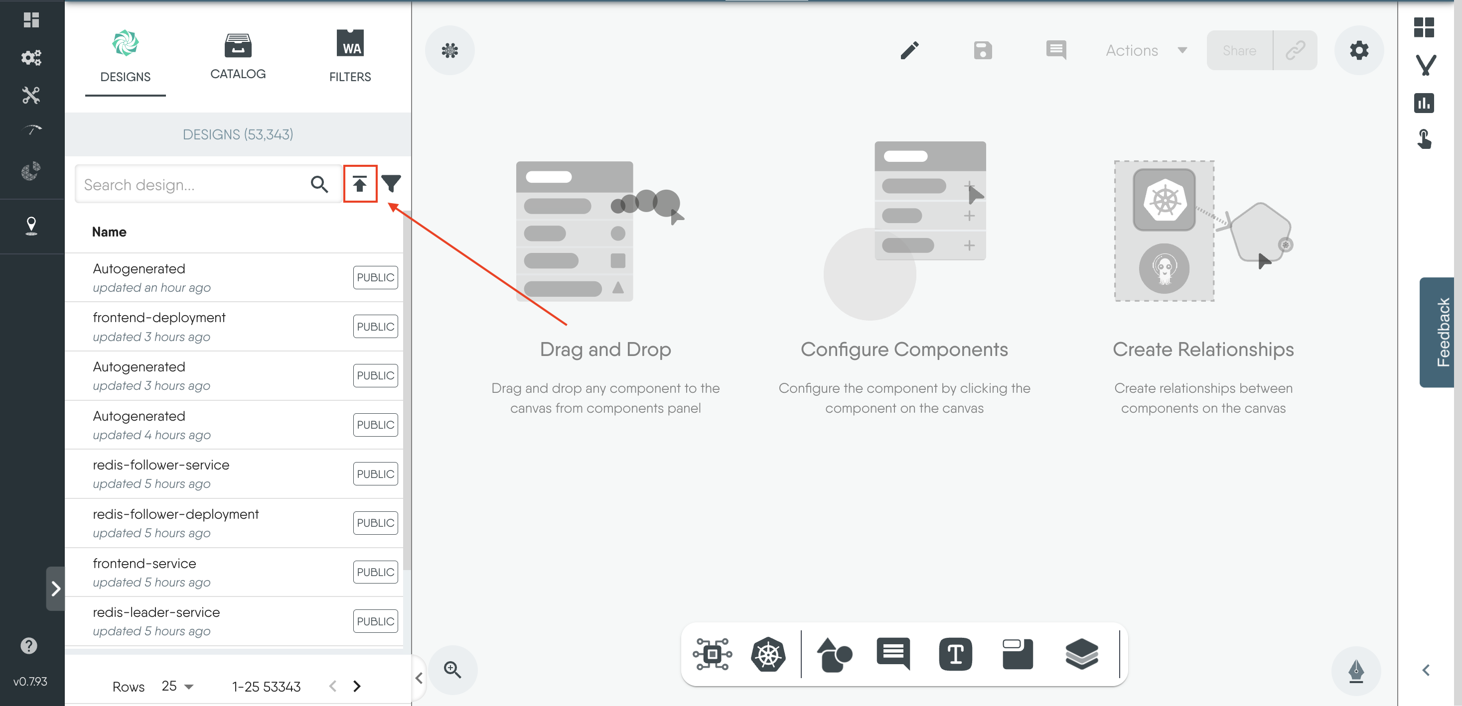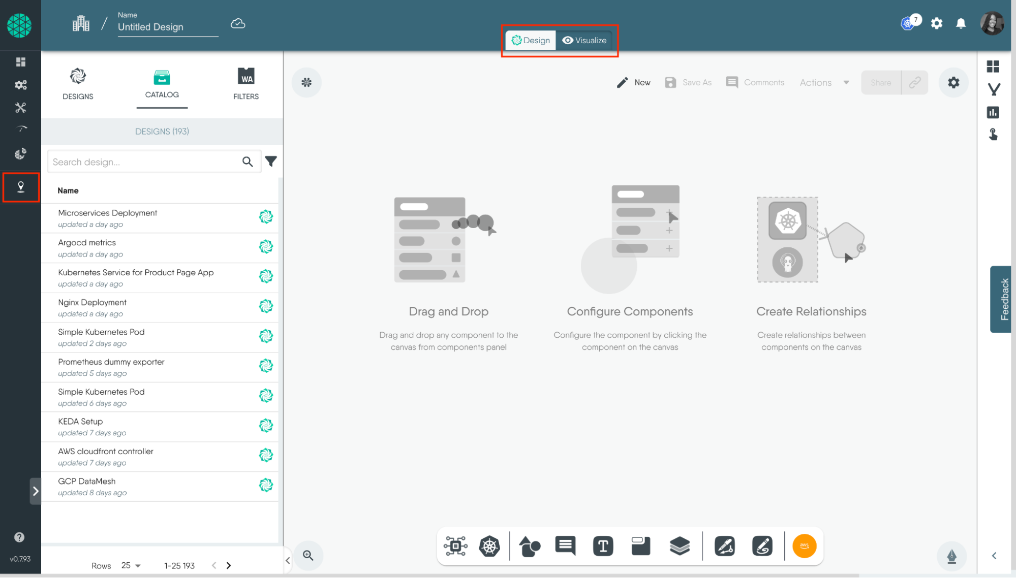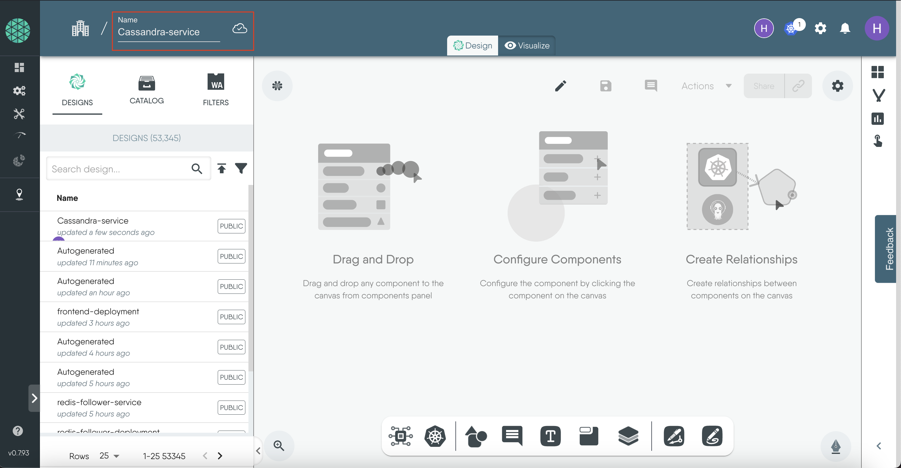 With the Designer toolbox at your disposal, effortlessly construct complex cloud-native deployments. Simply drag and drop components onto the Kanvas canvas, arranging and configuring them in a way that suits your architecture.