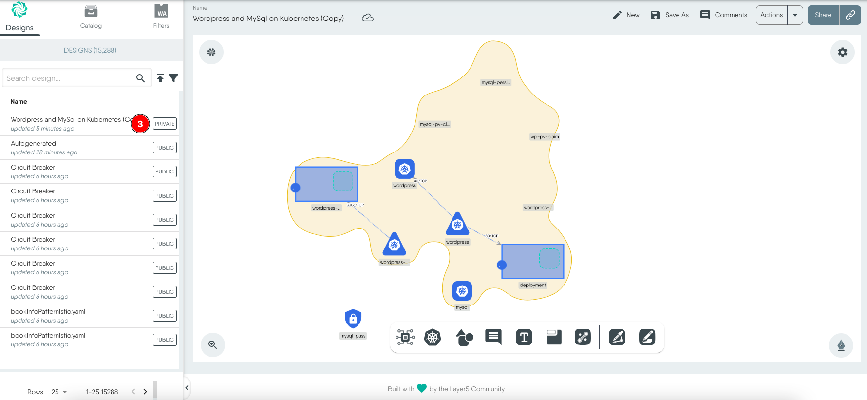 When working with Kanvas, you can effortlessly integrate various design files to start building and managing your cloud-native applications. Whether you’re working with Helm charts, Docker Compose files, or Kubernetes manifests, Kanvas provides a unified interface to import these files and visualize your infrastructure setup. This versatility allows you to streamline the design process, ensure consistency, and tailor your cloud-native environments to meet specific needs.