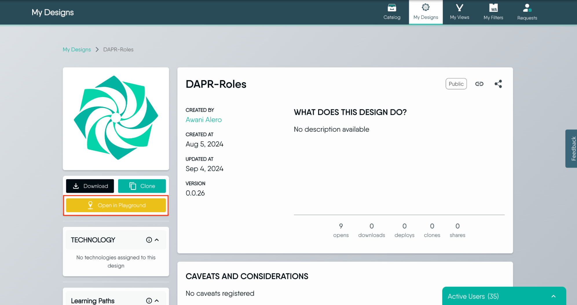 Find your newly cloned design in the list of designs in the left navigation panel.